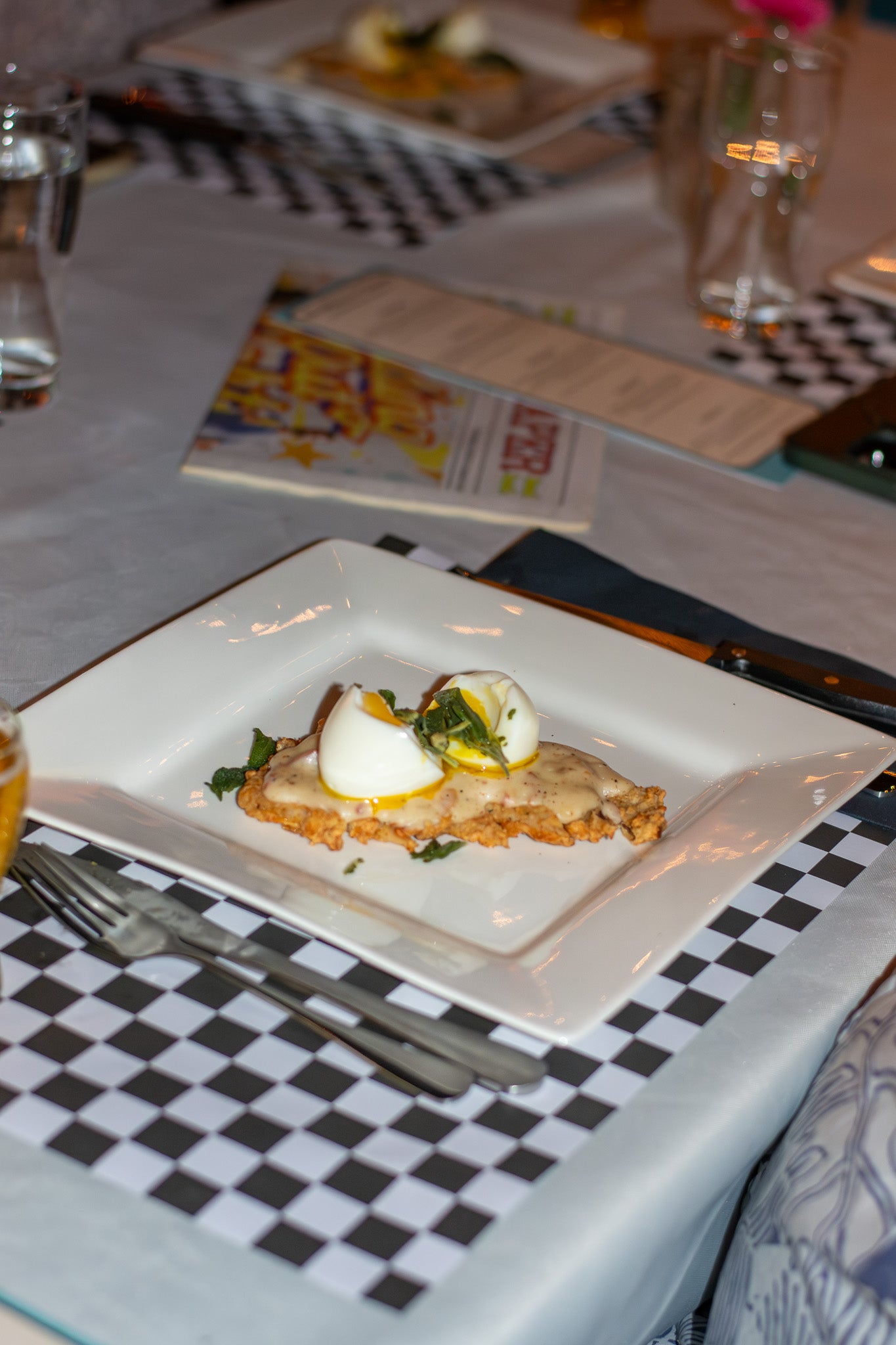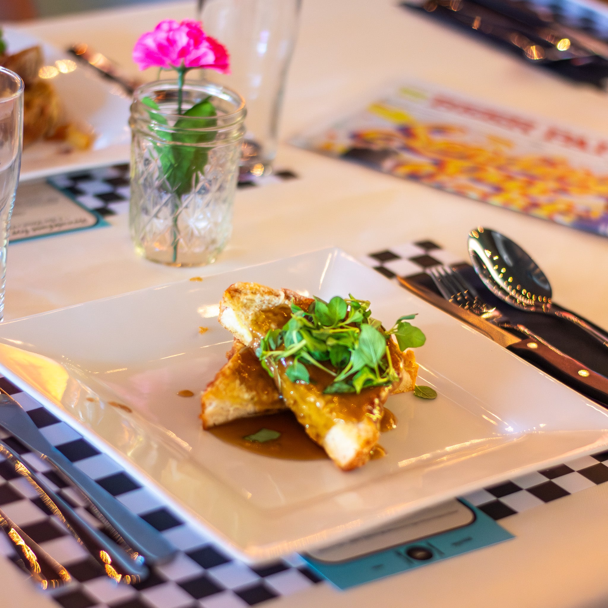 THIRD COURSE: Mac & Cod paired with Bottle-Conditioned Sanctus Michael Archangelus Tripel - Saffron, cheddar, and gruyere mac and cheese finished with a golden-brown, deep-fried white cod battered in panko and fresh herbs, garnished with a cheese crisp & micro chives
