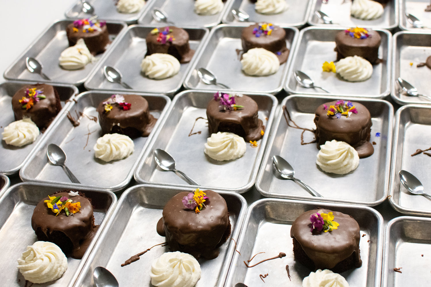FIFTH COURSE: Deconstructed Ho-Ho paired with A Touch of Everything Barrel Aged Stout -light and fluffy chocolate cake, piped with vanilla frosting, covered in chocolate ganache.