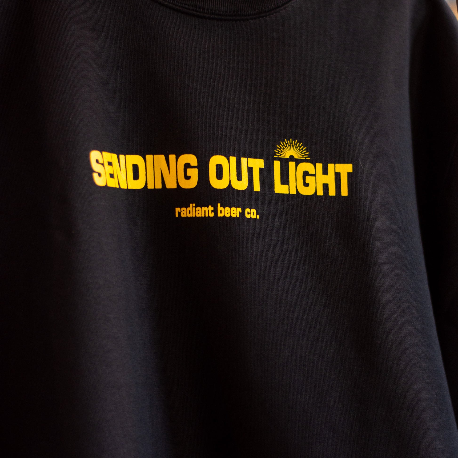 SENDING OUT LIGHT -- it's what we do, and it's what this Crew Neck Sweatshirt says. The sweatshirt comes from Stanley/Stella, and we got it in two colors...this being Black w/ a rich Yellow font.